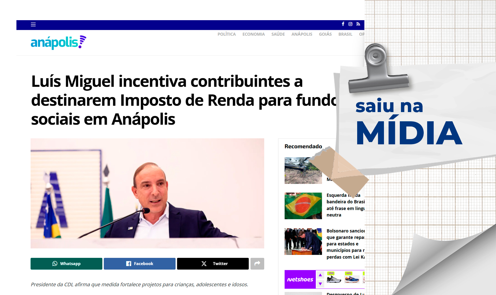 Luís Miguel incentiva contribuintes a destinarem Imposto de Renda para fundos sociais em Anápolis