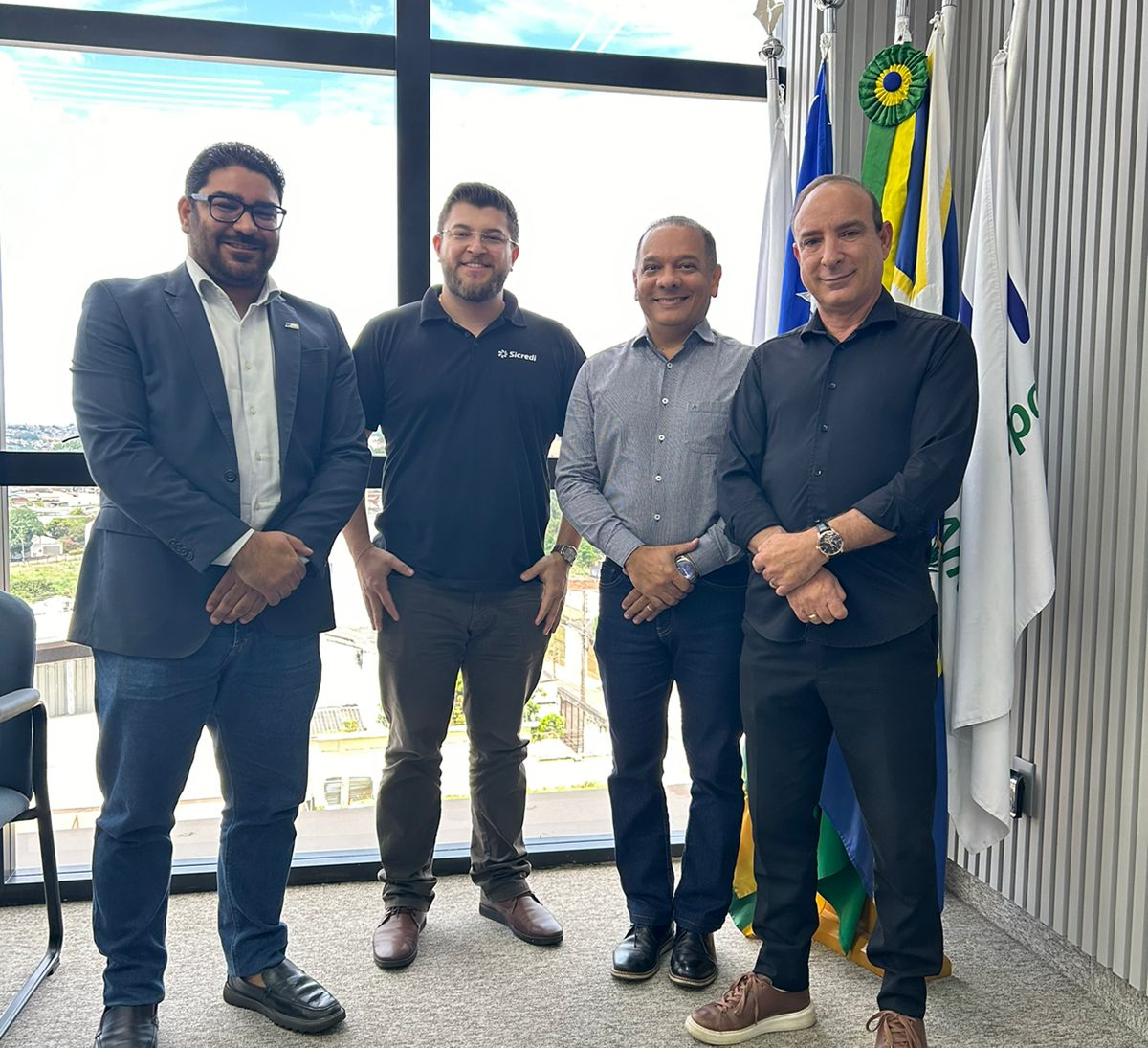 O presidente da Câmara de Dirigentes Lojistas (CDL) de Anápolis, Luis Miguel Mendes, e o presidente da CDL Jovem, Luan Samuel Mendes, receberam nesta sexta-feira a visita institucional de diretores da cooperativa Sicredi Celeiro Centro-Oeste. Estiveram presentes Paulo Júnior, Paulo Henrique Santos e Filipe, representantes da instituição financeira na cidade.